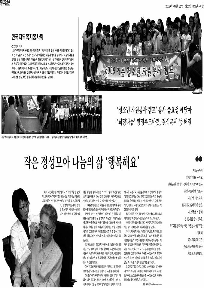 사랑나눔을 실천하는 한국지역복지봉사회 페이지 정보 작성자 최고관리자 댓글 0건 조회 7,128회 작성일 09-09-23 00:00 본문 사랑나눔을 실천하는 한국지역복지봉사회 목록 이전글사랑나눔을 실천하는 한국지역복지봉사회 09.09.23 다음글2009년 여름방학 청소년 자원봉사현장체험 09.08.13