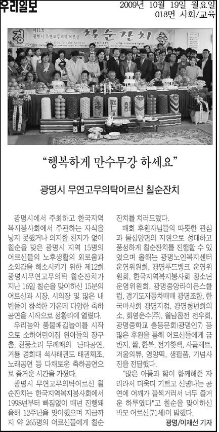 제12회 광명시무연고무의탁 어르신 칠순잔치 페이지 정보 작성자 최고관리자 댓글 0건 조회 8,139회 작성일 09-10-23 00:00 본문 제12회 광명시무연고무의탁 어르신 칠순잔치 목록 이전글제12회 광명시무연고무의탁 어르신 칠순잔치 09.10.23 다음글봉사는 동정아닌 아픔고통을 함께 나누는 것 09.09.23