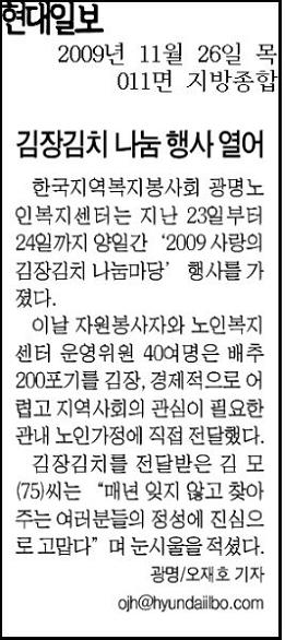 2009 사랑의 김장김치 나눔마당 페이지 정보 작성자 최고관리자 댓글 0건 조회 8,031회 작성일 09-11-26 00:00 본문 2009 사랑의 김장김치 나눔마당 목록 이전글2010년 떡국떡 만두나눔마당 보도자료 10.02.16 다음글한국지역복지봉사회 창립 12주년 기념 09.11.24